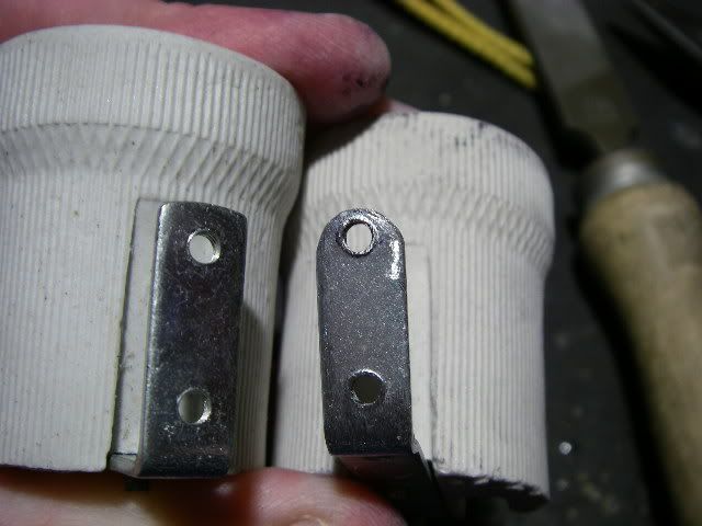 There are two supports behind the lamp holder positions that will get in the way of most alternative holders, so they need to be removed. I used a Dremel to cut them down in size.