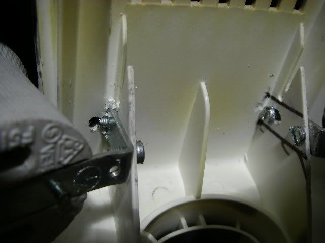 Although i was going to use the bracket on the other side of the fin, I put it over the other side to mark the alignment and hole positions. Access is a bit tricky and requires drilling at an angle. I also elongated the bottom holes to make alignment of the screws easier.
