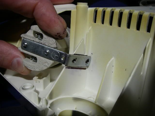 If you've not already removed the two screws that hold the mains connector in place, then do so now and the whole wiring assembly can then be lifted out.