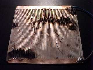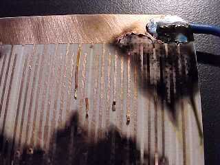 This is a close up of one of the bus bars, showing how the copper has been blown off the board.