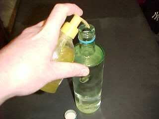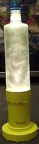 When I got home, I got an empty lava lamp bottle and filled it with water and a few squirts of soap, then placed it on a lava lamp base to see if the heat from the lamp would cause enough water turbulence to create the pearling effect. It did so in style! so here's the plans for a super easy lighting effect that looks superb.