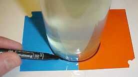 In the picture above I have Selotaped two colours of gel together (out of a gel swatch book), and used the bottle as a template to get a two colour gel.