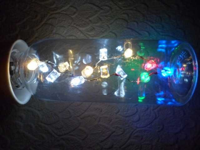 This is a really neat project that lets you make a rather attractive mains powered lamp that has a string of LEDs inside it. It's not intended to illuminate a room, but is just for decorative use, although it does make a very nice night-light.