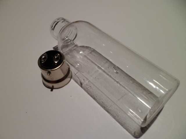 In this case I'm using a bayonet cap base (which is the most common in the UK) and a plastic bottle got as part of a dollar-store travelling set.