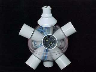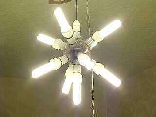 And here's a violent high luminosity sputnik type optical devastator fitted with nine 18W CFL lamps (162W total) giving an equivalent light output of 900W. Ouch!