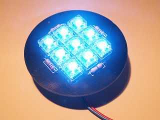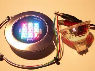 This is the newer and better version of the LED spotlights. Instead of the 5mm LEDs it uses a group of nine superflux LEDs for greater intensity and smoother mixing.