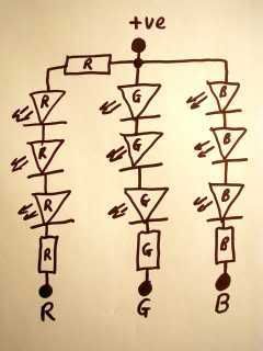 Then test on a regulated 12V supply with the positive connected to the common wire and the negative touched to the red, green and blue wires in turn to test each circuit of LEDs. Then try commoning all the colours to negative at once and prepare to be dazzled!