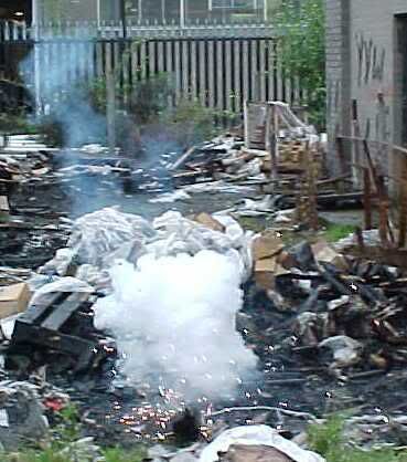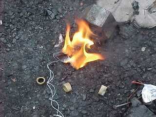 The blazing remains of the Gaffa tape, since the metallised plastic bag appears to have been shredded in the blast.