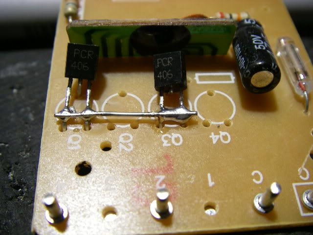 If the connections on the controller are not marked as shown on the righthand controller above, then you'll need to work out the connections by tracing the tracks on the PCB. The power-in connections from the plug or transformer will usually be next to each other and will usually head straight to the four diode rectifier on the PCB. The output channels should be obvious because the tracks will go straight to the little thyristors. The common positive for the lights will often be at the opposite side from the two power connections, but not always. If you can work out what the power connections (from the plug or transformer) are and then deduce the outputs then the only remaining connection should be the common positive for the lights.