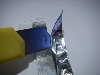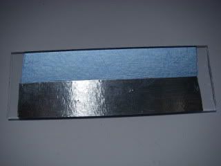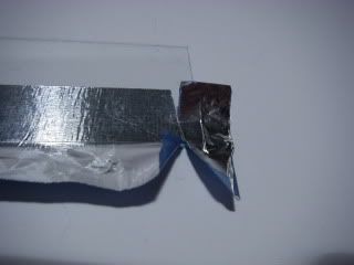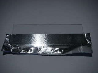 I used self adhesive aluminium foil for my prototype. I started by applying a piece over half the glass plate as shown above.