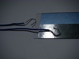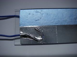 Then stuck them onto the electrodes with more aluminium tape. this should be fairly reliable, since the current is very low.