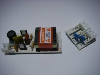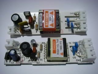 The easiest source of a modestly high voltage supply was from a cold cathode kit as sold for modding PC cases. I got mine from an online site called ebuyer in the UK, and it came with two rather neat 12" (300mm) blue cold cathode tubes.