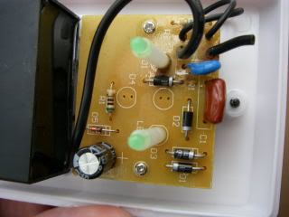 OK, so that's how you make a power saving plug. All you need is a plug-box, a couple of LEDs and a 1 watt 100K resistor. If you're in America use a 47K resistor or the LEDs are going to be even dimmer.
