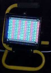Now this is a good beefy project. It's a PCB that retrofits into a generously sized 500W halogen style floodlight casing. It replaces the existing lamp with a panel of 180 LEDs that can project a wide variety of colours using RGB colour mixing. The PCB is fully compatible with the RGB controller in the previous RGB project, and several of these lights could be driven in tandem to provide a strong colour wash.