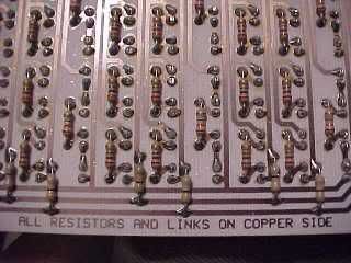 The LEDs are all mounted on the front of the PCB, but the resistors and links are mounted on the back. (Just like it says.)
