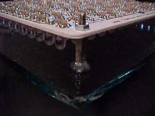 This mounting arrangement ensures that the LEDs are held in perfect alignment with the glass regardless of the floodlight type. It also allows the PCB to be easily removed from the glass if required.
