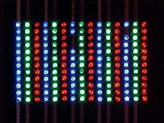 The choice of resistors will depend on the type of LEDs, the number in each circuit and the residual voltage to drop across the resistor. In this design the red LEDs are wired in series circuits of four to give a total forward voltage of roughly 8V. A resistor of 180 ohms should be used for these on a 12V supply. The greens and blues are wired in pairs and will have a voltage of between 6 and 7 volts. A resistor value of about 270 ohms should be used on a 12V supply.