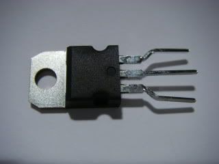 Next is a SIL (Single In Line) resistor array. This component has eight pins and has four serparate 1000 ohm resistors in it. There is a polarity dot on one end, but in this application the resistor array can go in either way round. It will be obvious where it goes in the PCB. This component has four resistors, three of which are in series with the MOSFET gates and one which is part of the power supply.