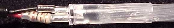 When the resin has cured, the USB lead is terminated to the LED via the resistor, and sleeved appropriately.