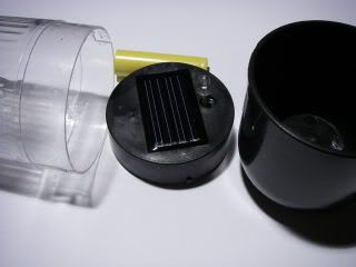 Now it's time to strip the solar light. These can be bought quite cheaply, and this particular one came from Poundland in the UK (like a dollar store). You simply can't get a solar panel, NiMh battery and circuit for any cheaper than buying a complete light. Note that there are two types of solar panel used on these cheap lights. One version is comprised of thin strips of blue coloured silicon sealed in a resin panel, and the other is a brown glass panel with thin stripes. The blue type is much better than the brown one. It has higher output for a smaller size and is less prone to corrosion issues.