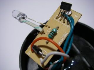 The new LED arrangement is soldered in place of the original LED matching the polarity of the original, and the whole assembly has any holes and exposed connections sealed with two part epoxy resin glue. How the assembly is packaged or protected depends on the type of light you use. If possible, try not to resin over the battery contacts as it would be useful to be able to change the battery in the future if the light gets a lot of use.