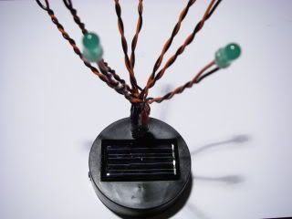 The components required are:- a cheap solar powered garden light, some solid core wire in two colours, some high ouput diffused LEDs (all the same colour) and some heatshrink tubing if desired.