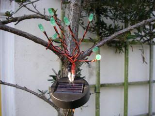 It's a weird solar powered LED "plant" that wraps around the branches of a tree or bush and charges during the day to glow at night.