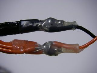 If required a legnth of wire can be soldered to the common positive and negative connections. In the picture above I used some more two part epoxy glue to seal the connections and also sleeved them with heatshrink tubing.