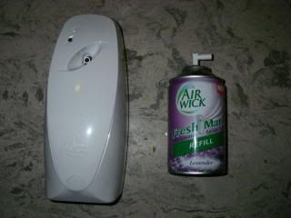 I tried a fancy new version of this spray dispenser with a built in PIR (Passive Infra Red) detector that lets the unit detect people walking about and increases the frequency of the sprays, but the sensor was triggered continually by the heat rising off the candle!