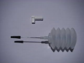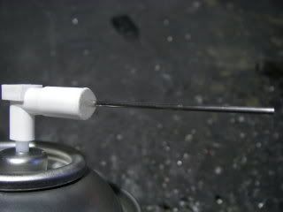Because the spray nozzle is recessed into the dispenser and also tends to burn a bit after a dose has been ignited, I decided to add a small stainless steel tube to the nozzle. This came from an empty inkjet refill bottle.