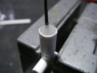 Initially I thought I would get away with just drilling a small hole in the end of the nozzle and jamming the tube in, but it transpired that the spray does not come up a central hole, so I had to drill the nozzle out and resin the tube in.
