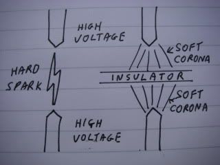 And connected my home built corona plate directly across the output of the high voltage transformer.