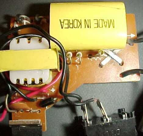I always wondered how they managed to generate such a high voltage output from such a low voltage input. If you consider that the output of these things can be in the region of 100,000v (fake marketing value) derived from a small 9v battery, then that makes for a voltage multiplication factor of over eleven thousand times. In reality it's even higher because the voltage across the battery gets dragged down by the high current demand. It followed that on my first visit to America I had to buy one and take it to bits to see how it worked. These things are very cheap and cost in the region of 20 UK pounds upwards, so I bought a cheap one and when I got back to my hotel I tried it on my leg to see how much it hurt, which happened to be quite a lot. :) I duly dismantled it and was surprised at it's simplicity. I brought the circuit board back as a technical novelty and have decided to post it here to satisfy the technical cravings of fellow techno dudes.