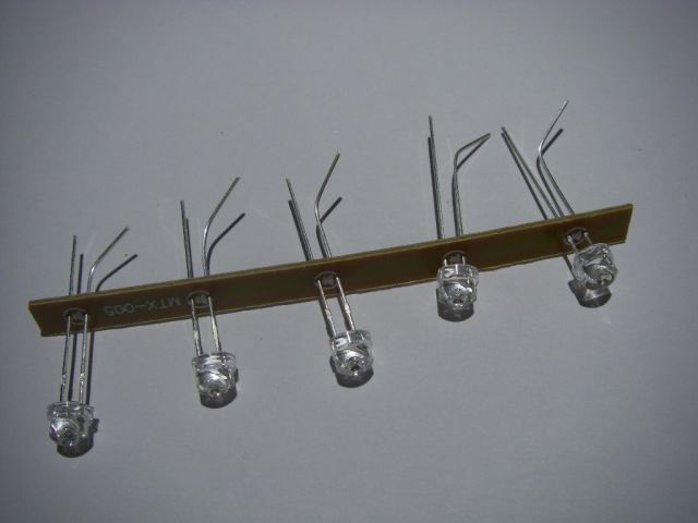 Insert the new LEDs with the correct polarity. The long lead is usually the positive one. I find it useful to kink the end of each LEDs longer lead slightly to stop them dropping out.