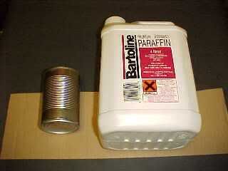 Here's the kit you'll need... An empty food can for use as the container, some cardboard for use as the wick and some liquid paraffin or (kerosene in the USA).
