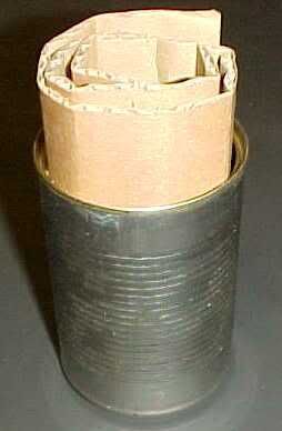 Cut the cardboard to a length that allows it to be rolled up and stuffed into the can with at least half an inch sticking up above the can, but not too much. I've actually left the wick a bit too high here.